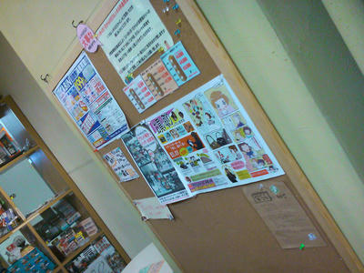 店内には掲示板があって、自由に宣伝メッセージを貼り出していいとのことだったので、私のお店も宣伝チラシ貼ってきました。