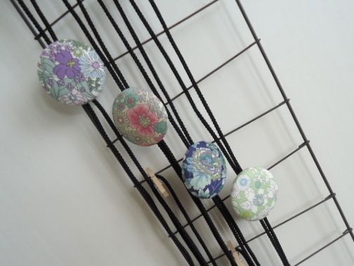 素敵なリバティの生地をクルミボタンにあしらって、ロープの先にビーズをキラキラ