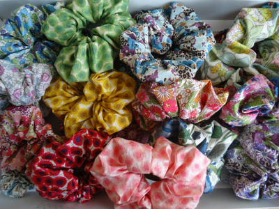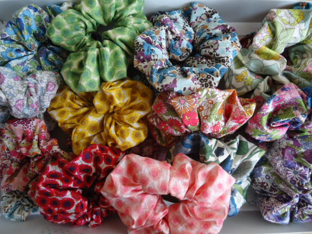 さて、今週のハンドメイドですが、久々にシュシュを大量に作りました。
