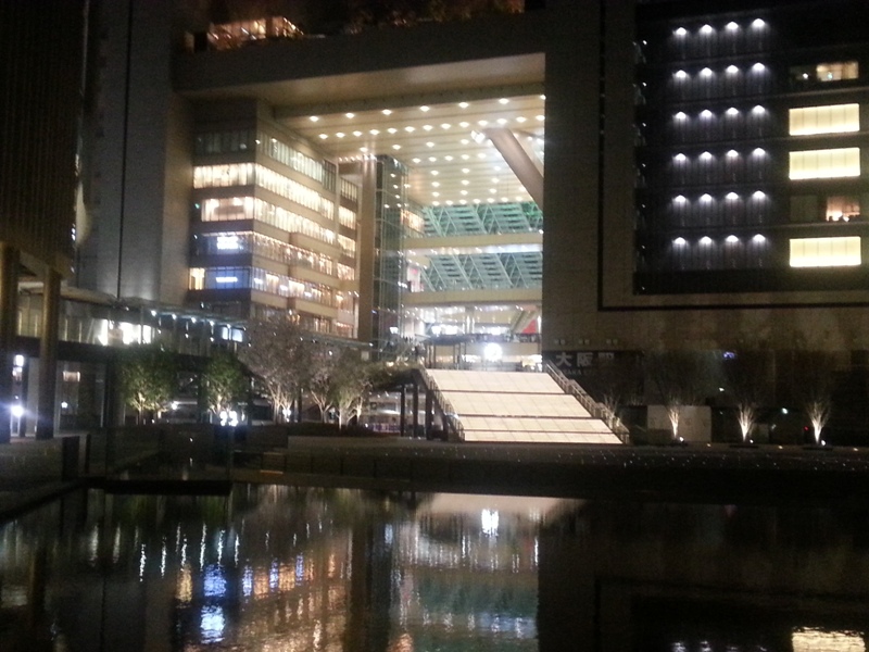 少し水が張ってあり、大阪駅の光が水辺に映っていて綺麗でした。