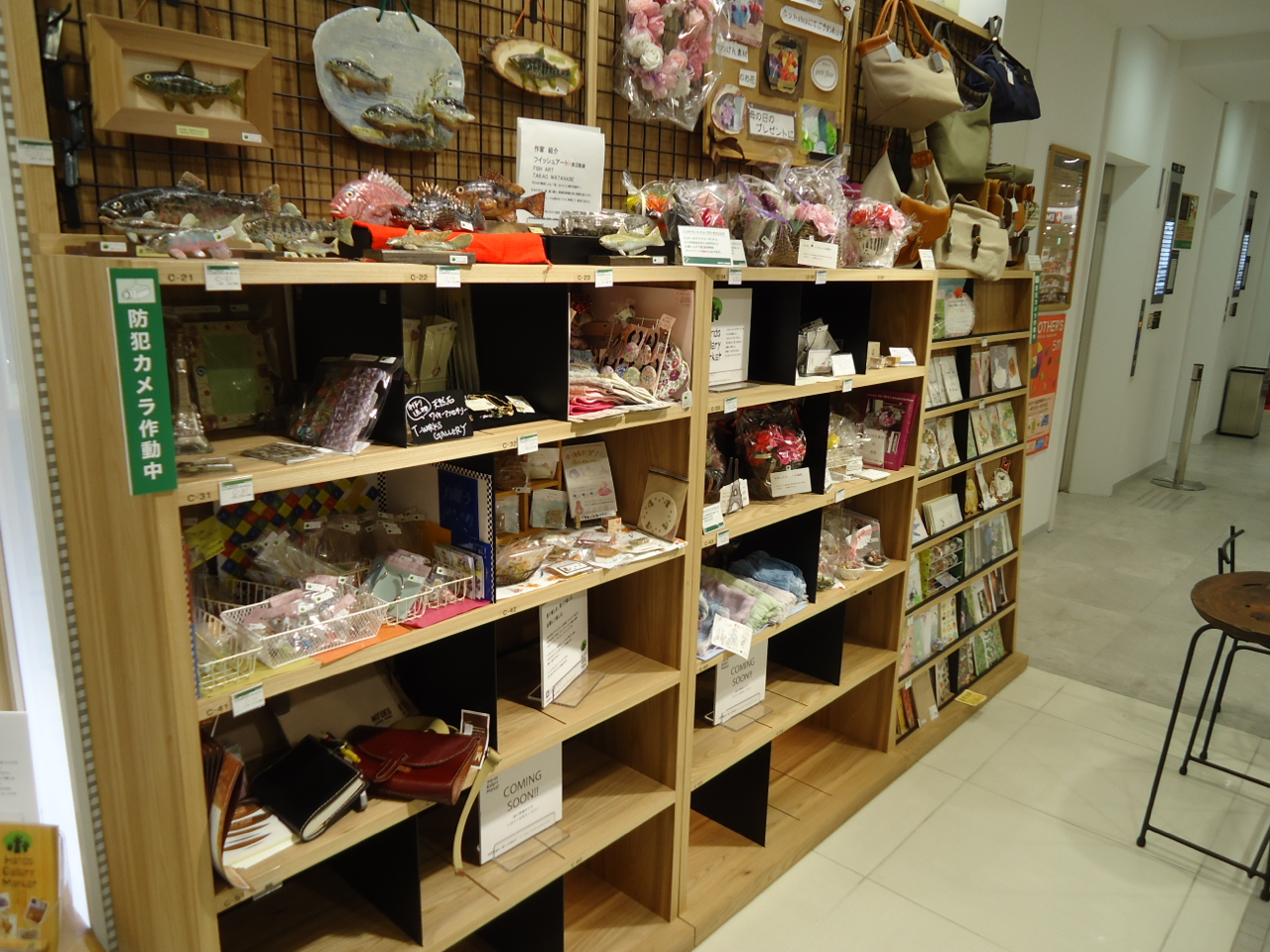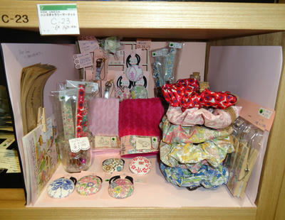 今日は、ずっと動きのなかった商品を思い切って引き上げ、ディスプレイの什器を入れ替えて、キーホルダーを新柄と交換しました。今週のブースはこんな感じです。